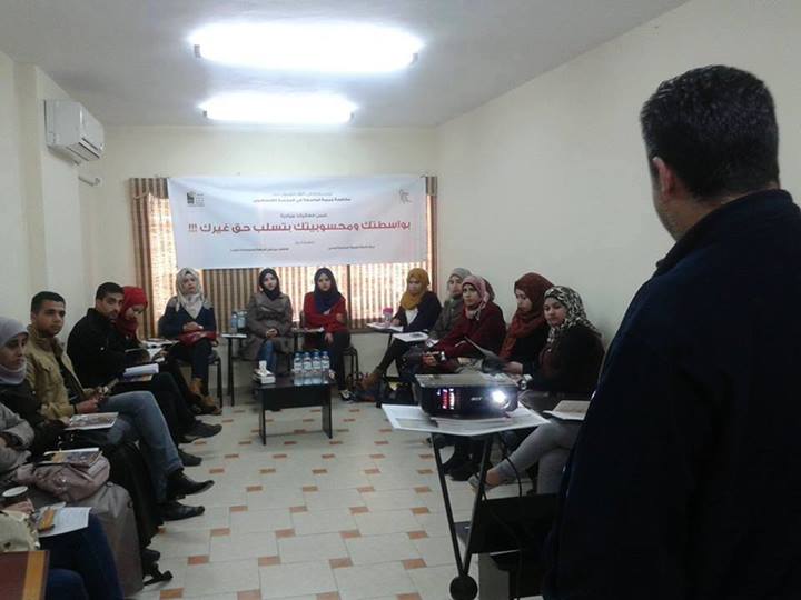 ناقشت الجلسة دور الطلاب والشباب بمكافحة الواسطة والمحسوبية، وأضرار ذلك على المستقبل العملي للمجتمع الفلسطيني، والية التعاطي مع حالات تمارس الواسطة والمحسوبية.