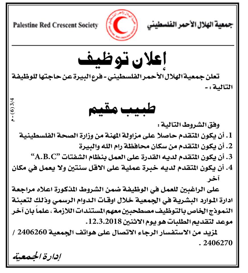 وظيفة شاغرة في رام الله