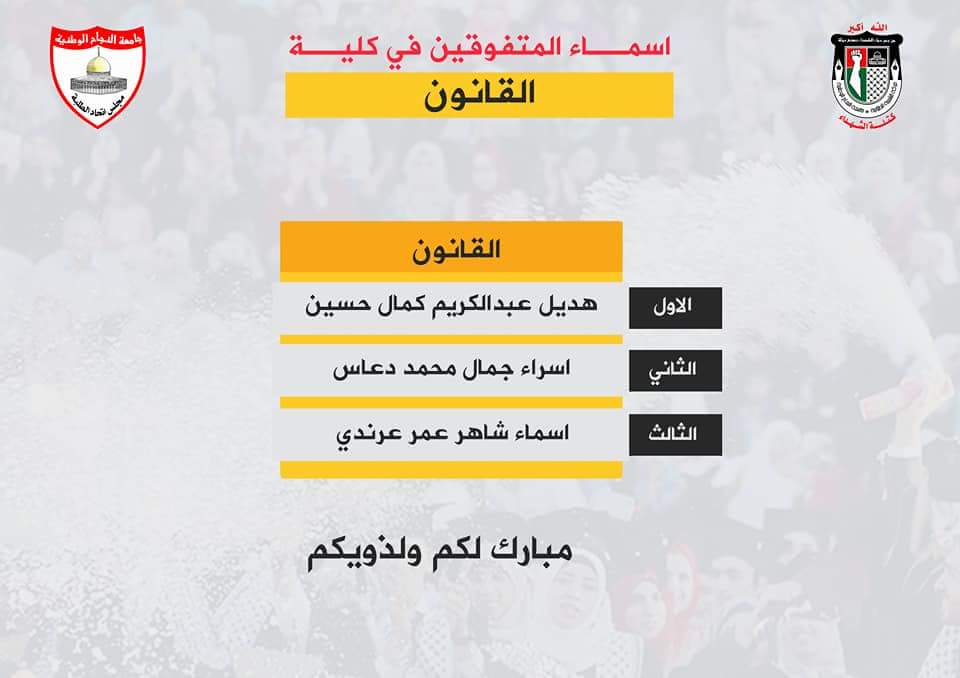 أوائل كلية القانون في جامعة النجاح.