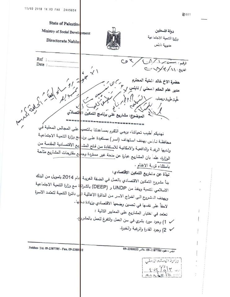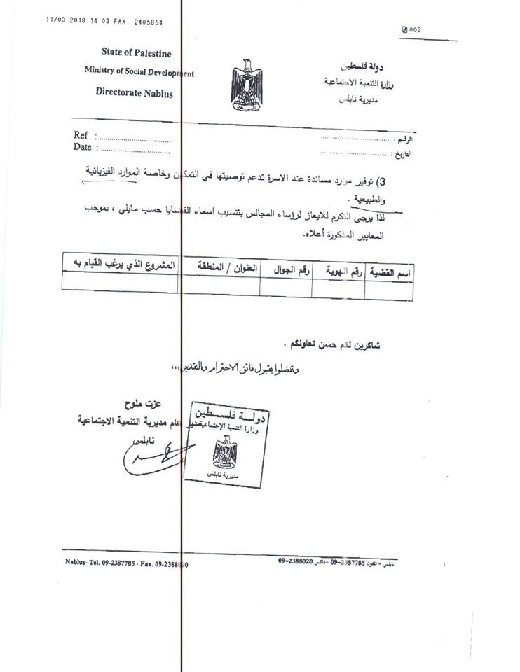 وزارة التنمية الاجتماعية تدعو المستفيدين من برامجها للاستفادة من منحة اقتصادية غير مستردة للأسر الراغبة بإطلاق مشاريع صغيرة في محافظة نابلس.