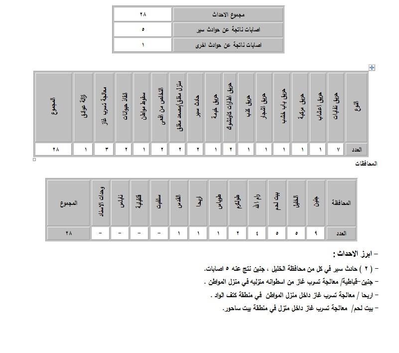 طواقم الدفاع المدني تتعامل مع 28 حادثاً خلال يوم من الثلاثاء 27.3.2018 حتى الأربعاء 28.3.2018.