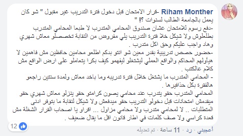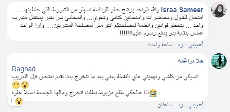 اعتبر بعض الطلبة المقبلين على التخرج والمتخرجين، أن التعديلات المقترحة على نظام تدريب المحامين تعديلات تعسفية بحقهم وبحق من يدرسون القانون، كما يظهر من هذه النماذج: