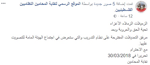 ما أن أعلنت نقابة المحامين يوم الجمعة 30.8.2018، التعديلات المقترحة على نظام التدريب، التي سيتم التصويت عليها في اجتماع الهيئة العامة، حتى انهالت الردود والتعليقات، التي ساد غالبيتها عدم الرضا عن هذه المقترحات.
