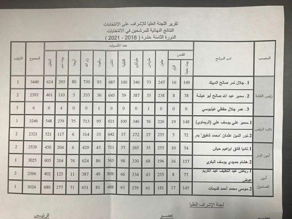 النتائج النهائية للمرشحين في انتخابات نقابة المهندسين في دورتها الثامنة عشرة (2018-2021).