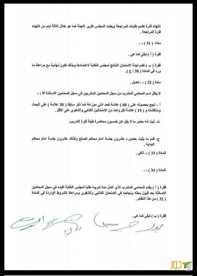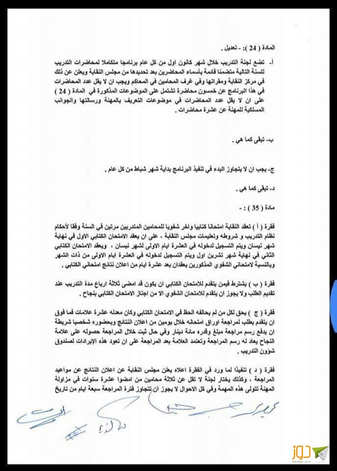 ويذكر أن التعديلات المقترحة على نظام التدريب لخريجي المحاماة تمثلت بـ
