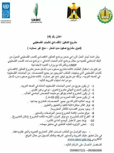 دعوة للتسجيل بمشروع التمكين الاقتصادي للشباب الفلسطيني.
