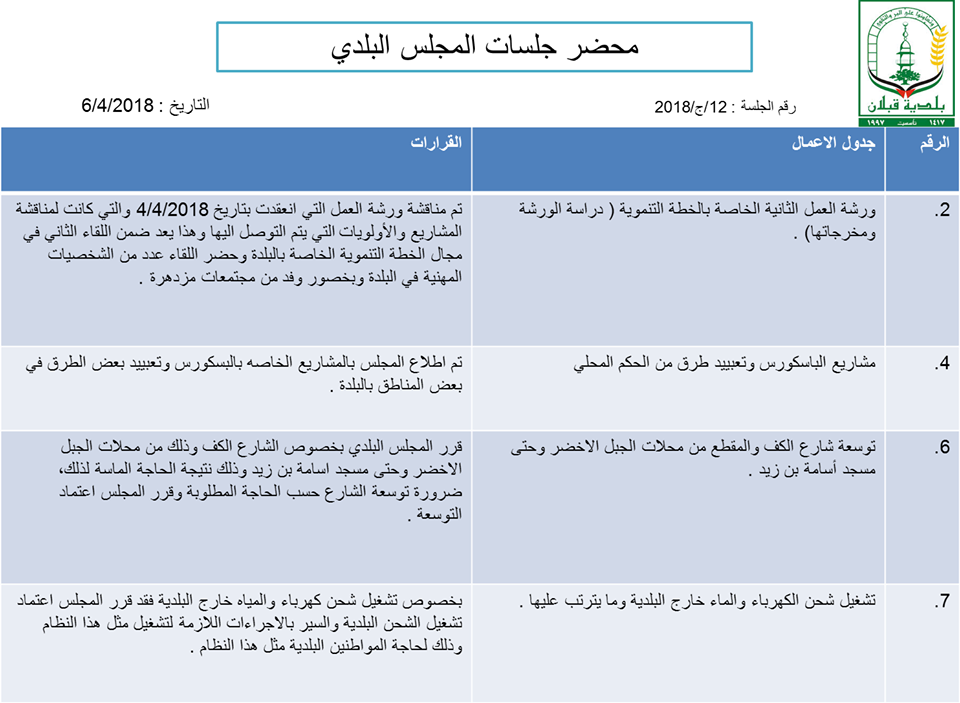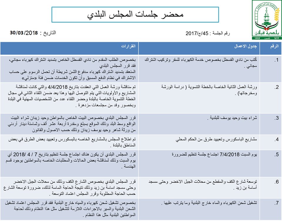 بلدية قبلان تنشر نتائج محضر اجتماعاتها وأهم القرارت التي اتخذت.