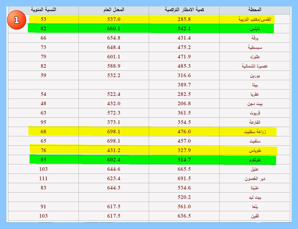 كميات الأمطار الهاطلة في فلسطين منذ بداية الموسم المطري 2018، وفق قراءة الأرصاد الجوية الفلسطينية.