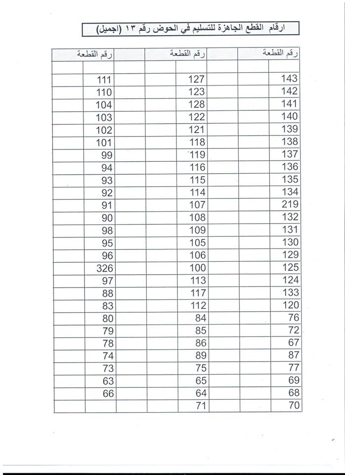 على أصحاب ومالكي القطع المرفقة في الجدول التواجد على رقبة الأرض يوم الأحد القادم 2018.22.04 لاستكمال أعمال المساحة واستلام الحدود لإجراءات التسوية (الطابو).