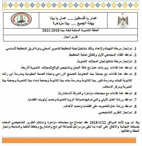 بلدية بيتا تنشر إنجازات متعلقة بالخطة التنموية المحلية الخاصة بها.