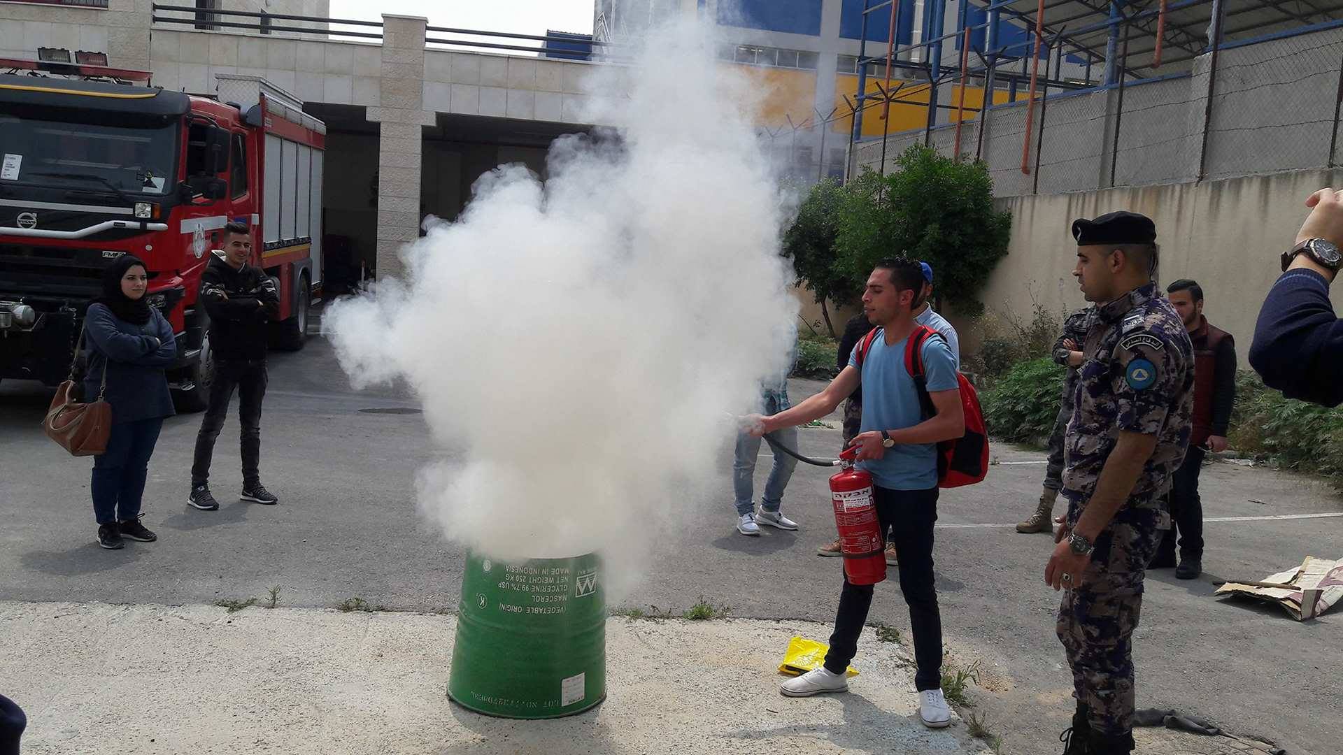 طلاب من جامعتي النجاح والقدس المفتوحة يقضون يومين بضيافة الدفاع المدني في نابلس ويتدربون على عمليات الإنقاذ والإطفاء.