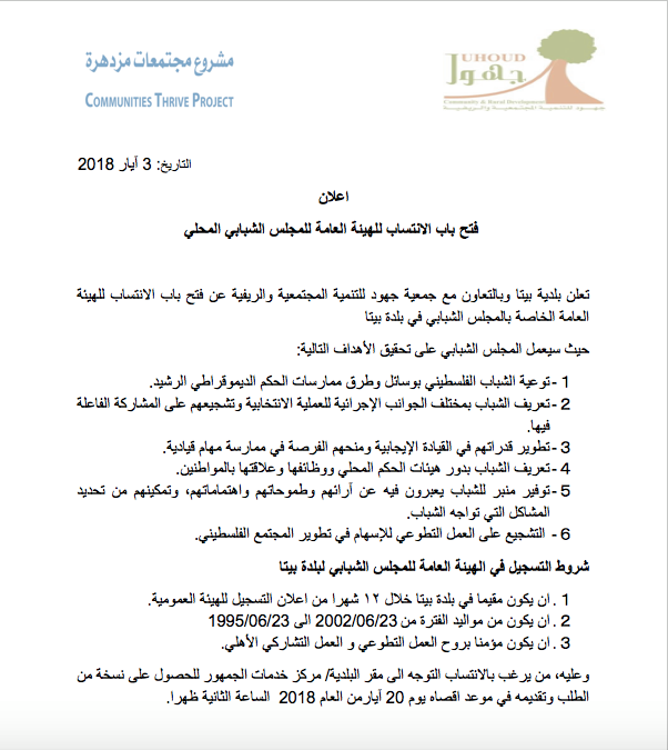 بيتا.. فتح باب التسجيل للمجلس الشبابي