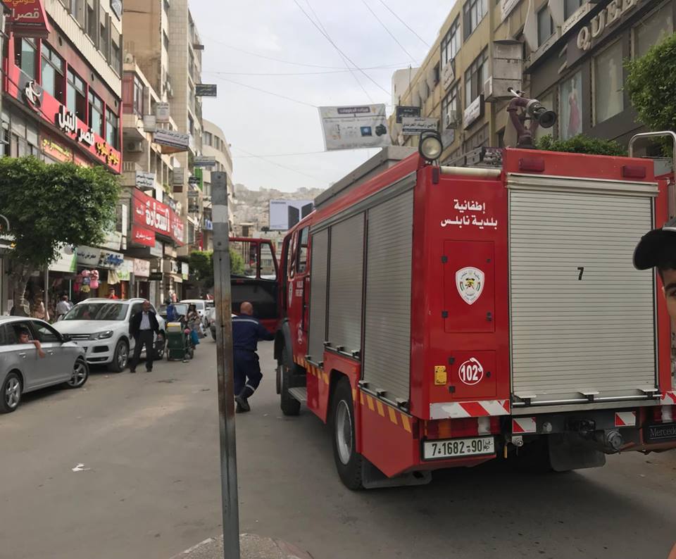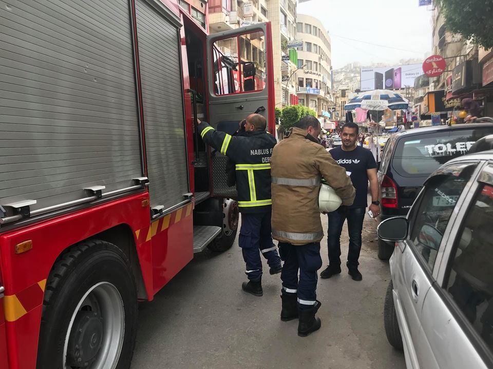 إطفائية بلدية نابلس تسيطر على حريق داخل مخبز وسط مدينة نابلس نتيجة تماس كهربائي.
