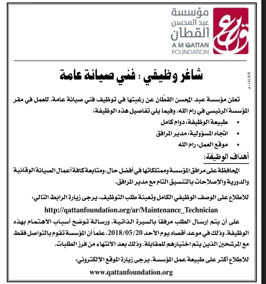 وظيفة شاغرة في مؤسسة القطان