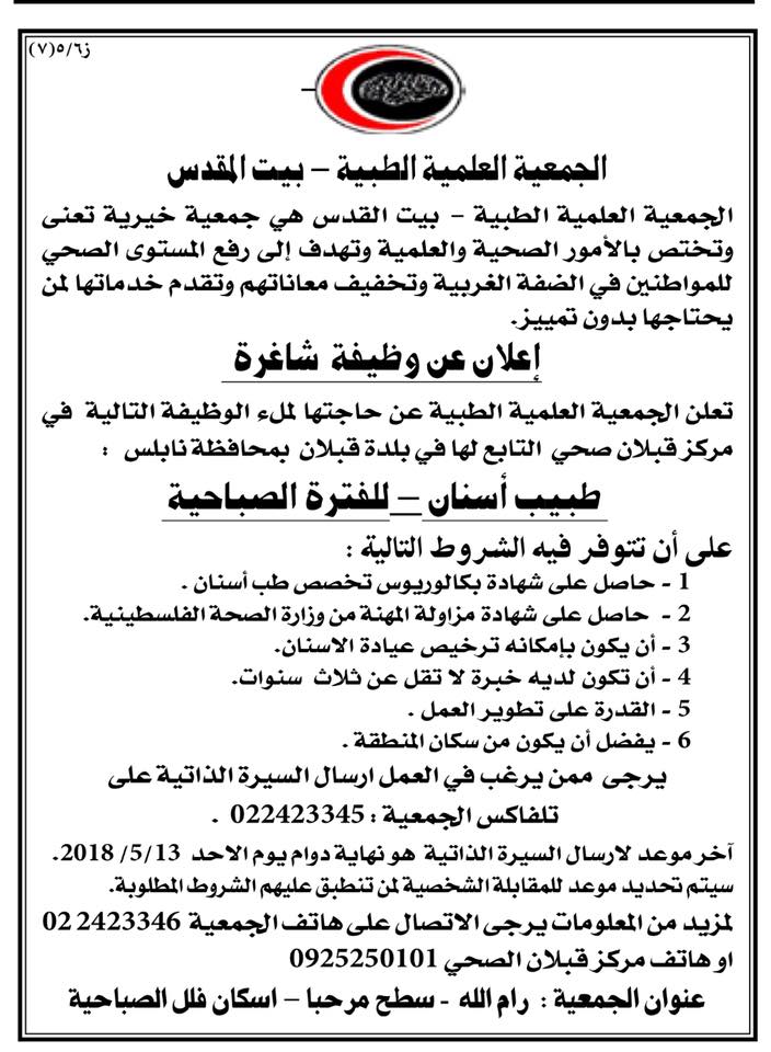 آخر موعد لتقديم الطلبات هو يوم الأحد 13.05.2018