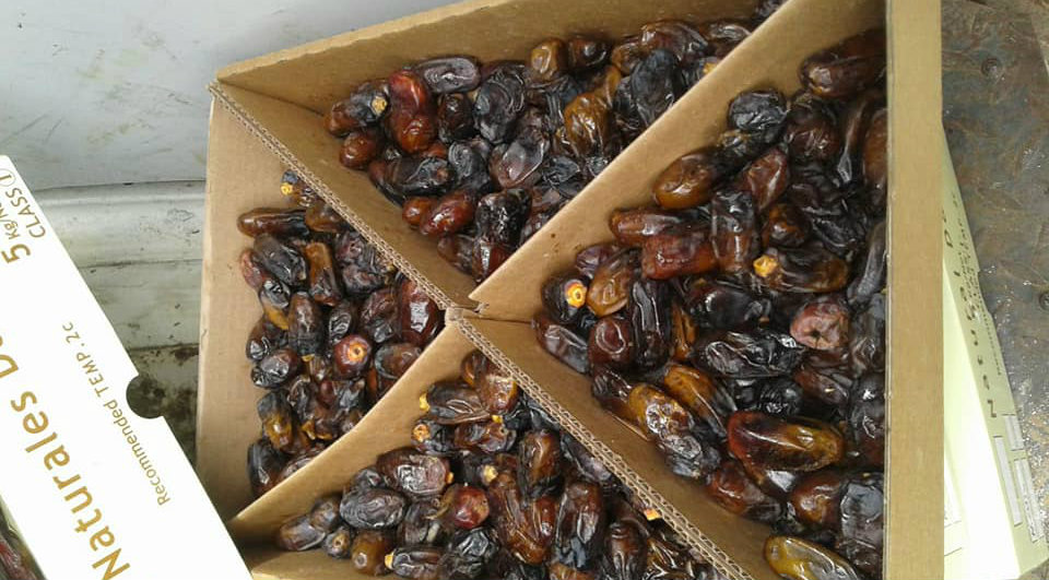 ضبطت طواقم الضابطة الجمركية يوم الأحد 6.5.2018، في محافظتي الخليل ونابلس حوالي 100 كغم تمور فاسدة وأخرى من إنتاج المستوطنات الممنوعة من التداول داخل الأراضي الفلسطينية.