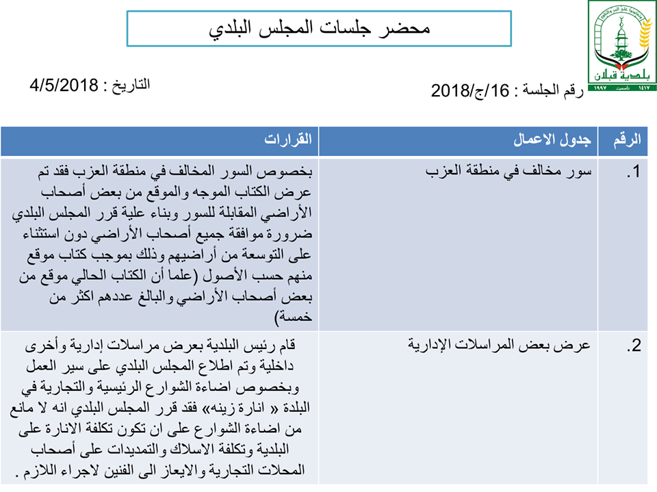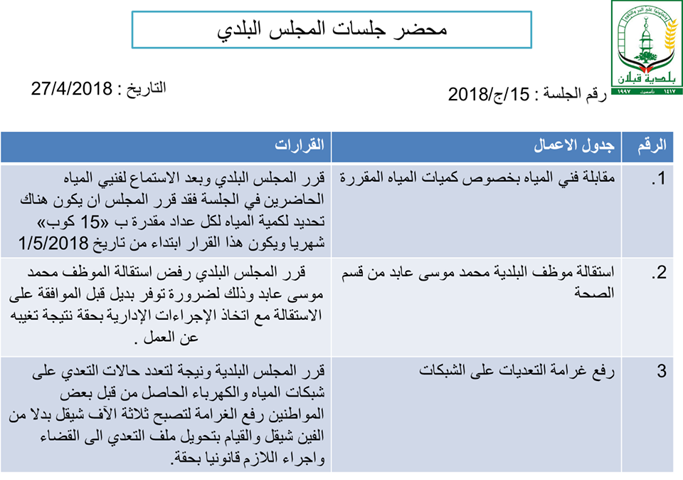 بلدية قبلان تنشر نتائج جلساتها يومي الجمعة 04.05.2018 و27.04.2018.