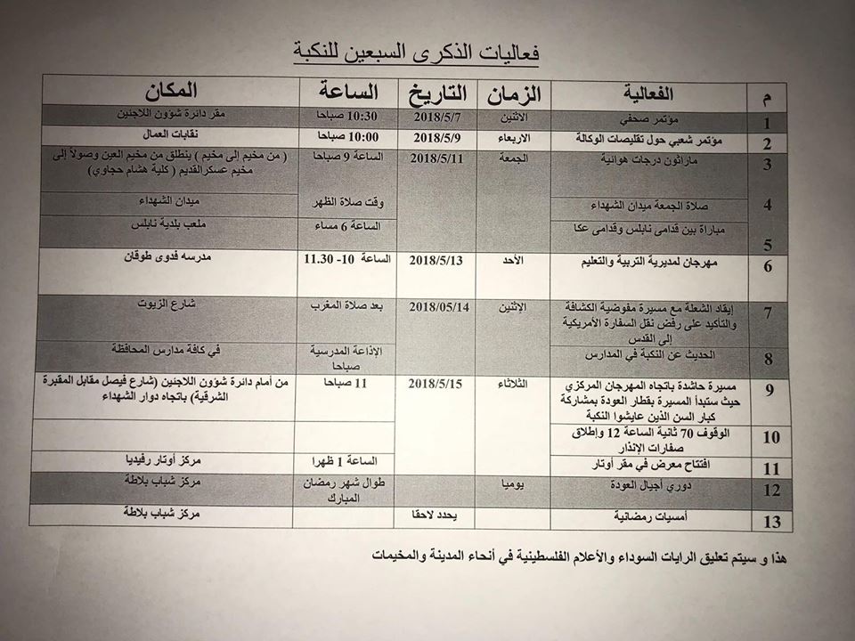 فعاليات الذكرى السبعين للنكبة