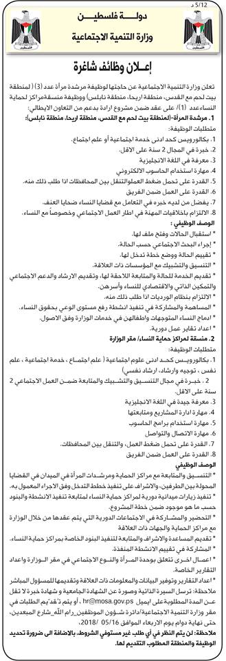 وظائف شاغرة في نابلس وأريحا وبيت لحم