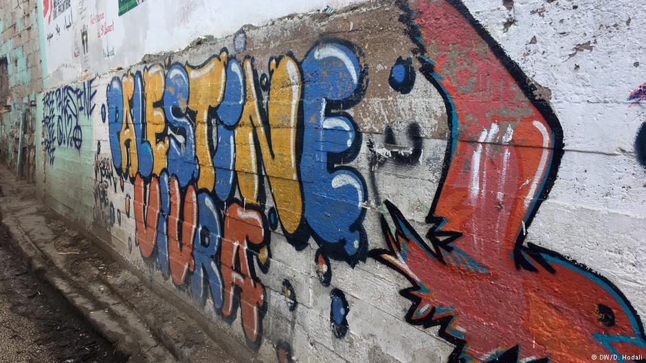 إنها لا تتذكر حياتها في فلسطين، التي اضطرت إلى تركها وراءها فقط، ولكن الماضي ترك أثره أيضاً في ممرات مخيم اللاجئين. ففي كل مكان تظهر العبارات نفسها وعلى تشابك أسلاك الكهرباء أيضاً، وهي "تحيا فلسطين" أو "الحق في العودة".