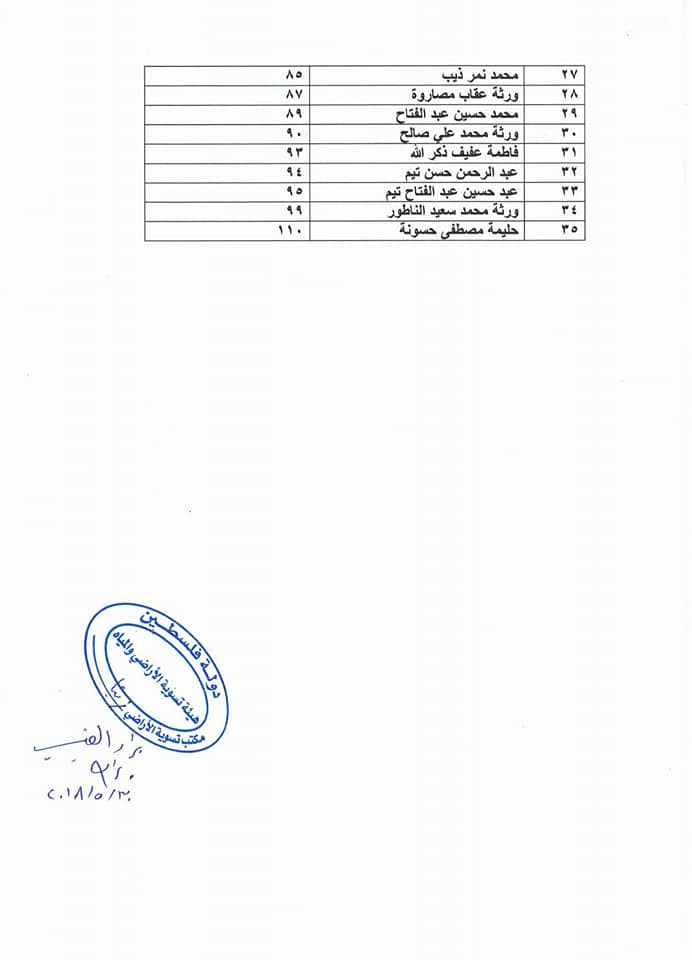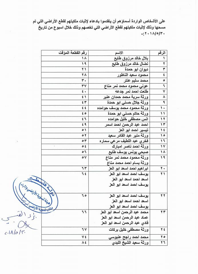 مكتب تسوية الأراضي والمياه في زيتا يدعو أهالي البلدة الواردة أسماؤهم، لتقديم ادعاء إثبات ملكيتهم لقطع الأراضي، التي تم مسحها خلال أسبوع.