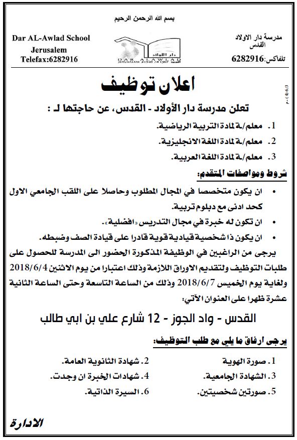 وظيفة شاغرة في الخليل