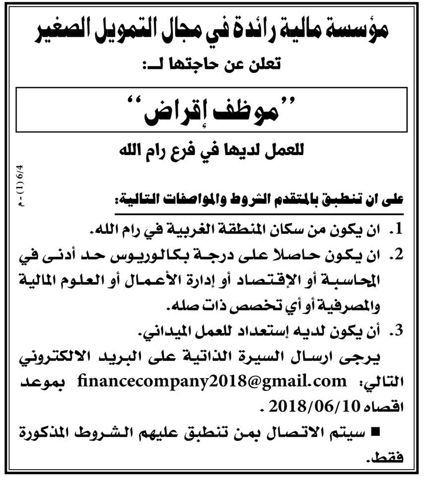 وظيفة شاغرة في شركة بنابلس