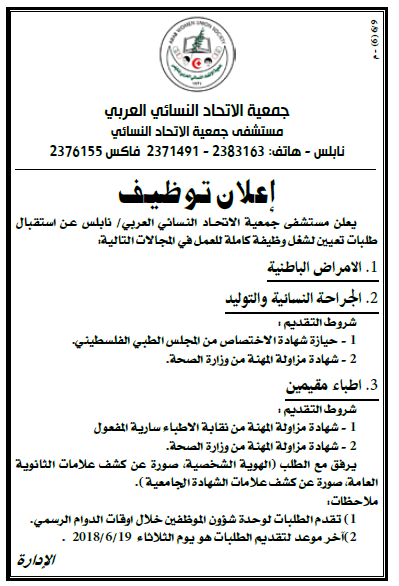 نابلس.. وظيفة شاغرة في الاتحاد النسائي