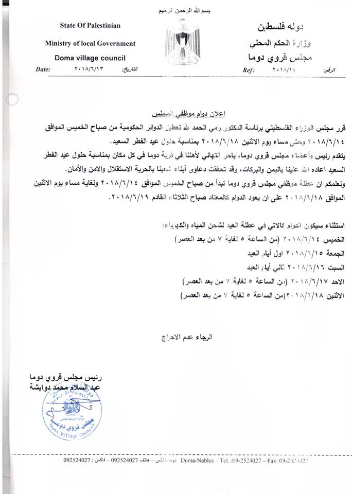 نابلس.. دوام مجلس قروي جوريش في العيد