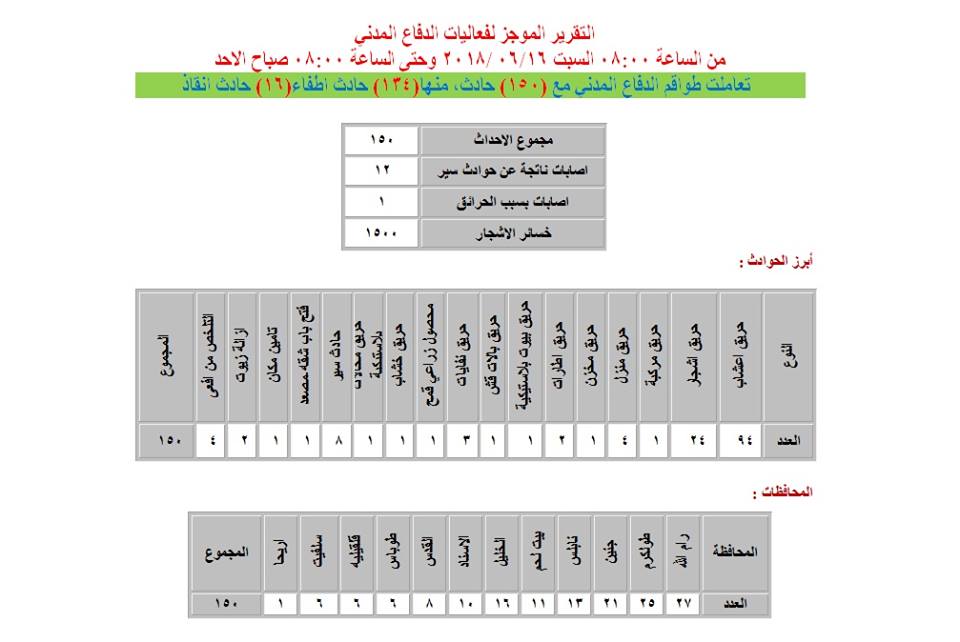 الدفاع المدني: 150 حادثاً في ثاني أيام العيد