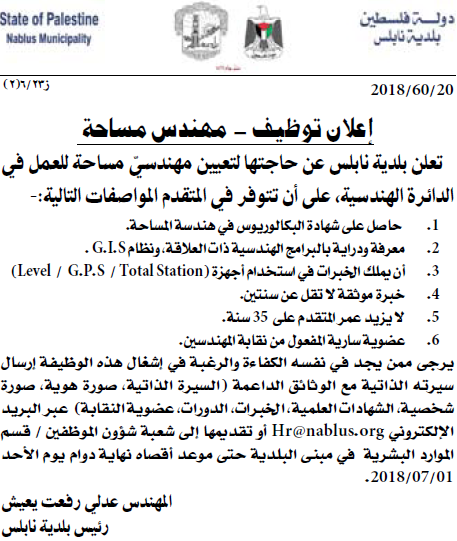 وظيفة شاغرة في بلدية نابلس
