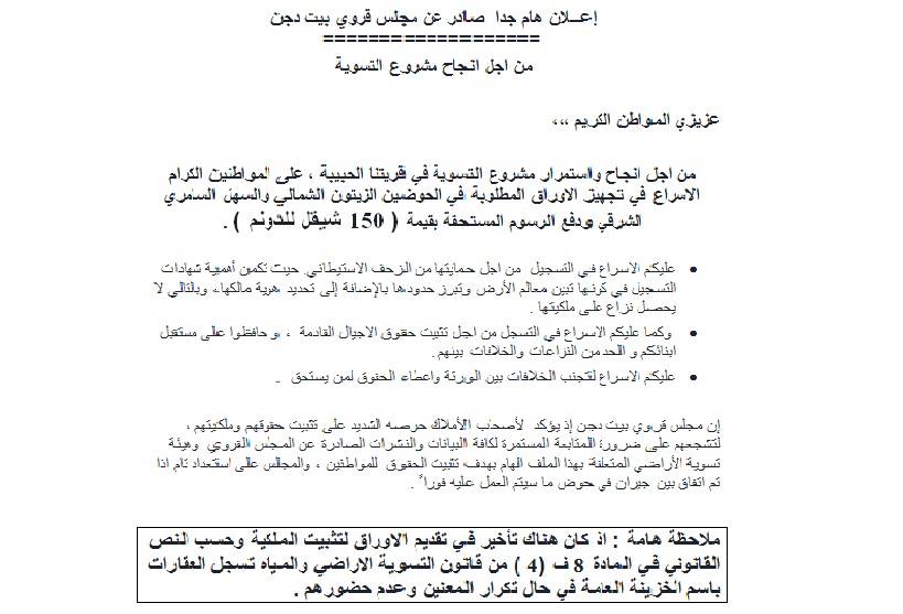 بيت دجن.. هام بخصوص تسوية الأراضي