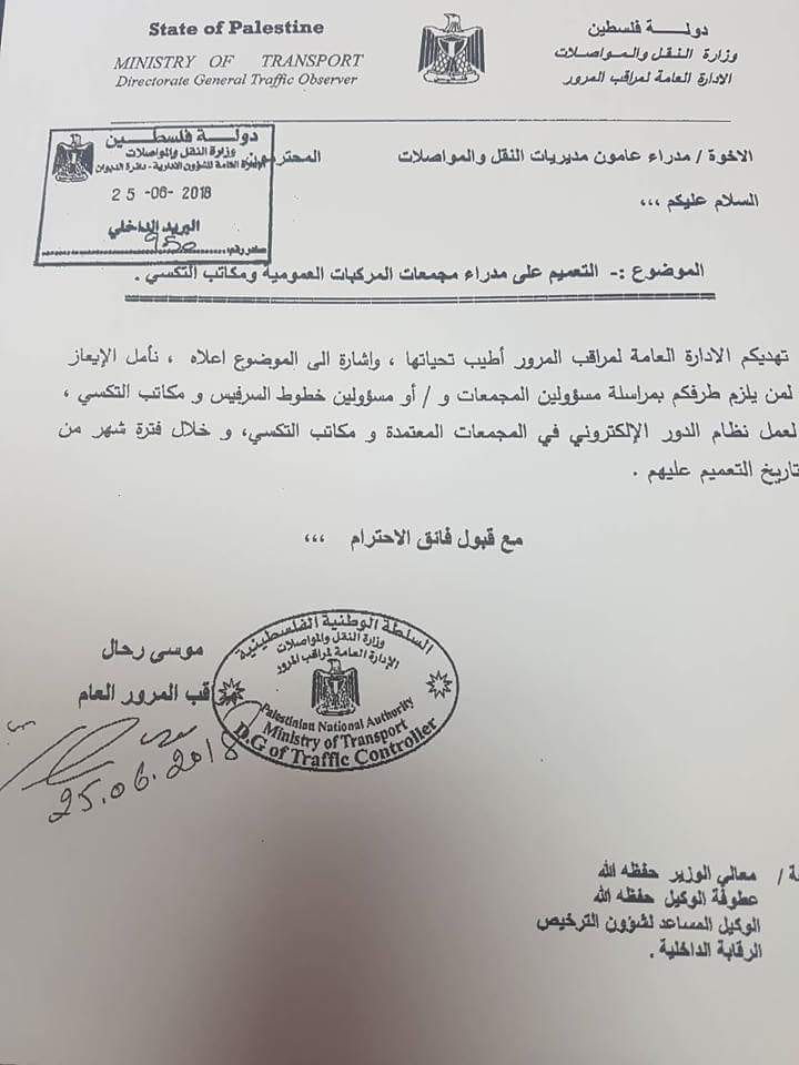 تعميم على مدراء مجمعات التكاسي والعمومي