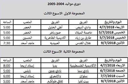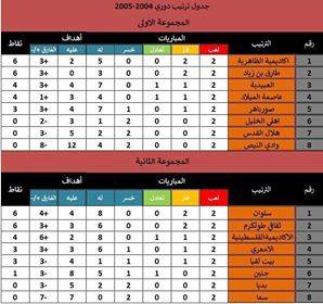 1-أكاديمية الظاهرية 2- طارق بن زياد 3- العبيدية 4- عاصمة الميلاد 5- صور باهر 6- أهلي الخليل 7- هلال القدس