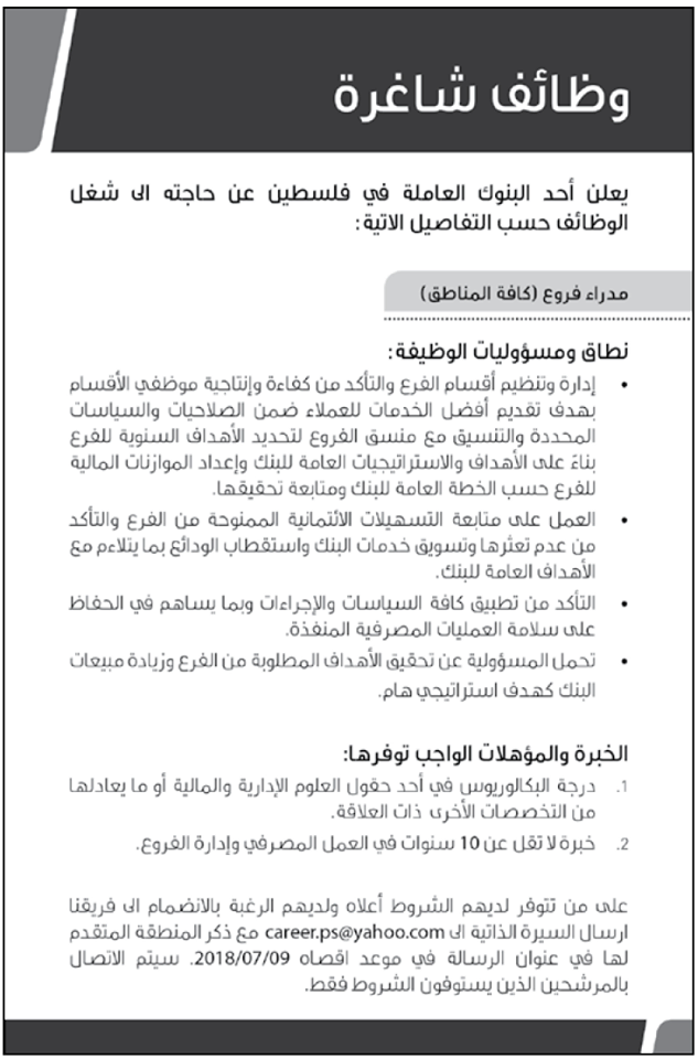 عدة وظائف شاغرة في بنك