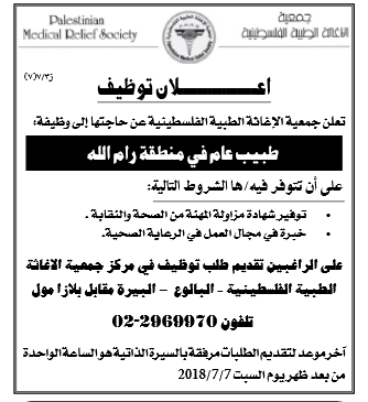 وظيفة شاغرة في شركة الإجارة الفلسطينية