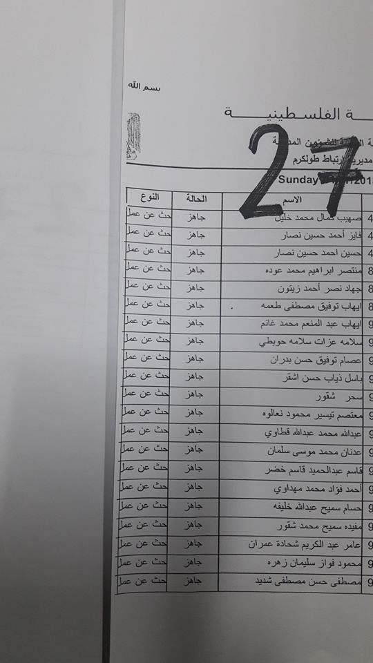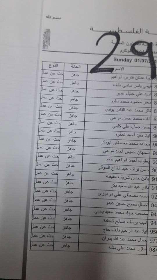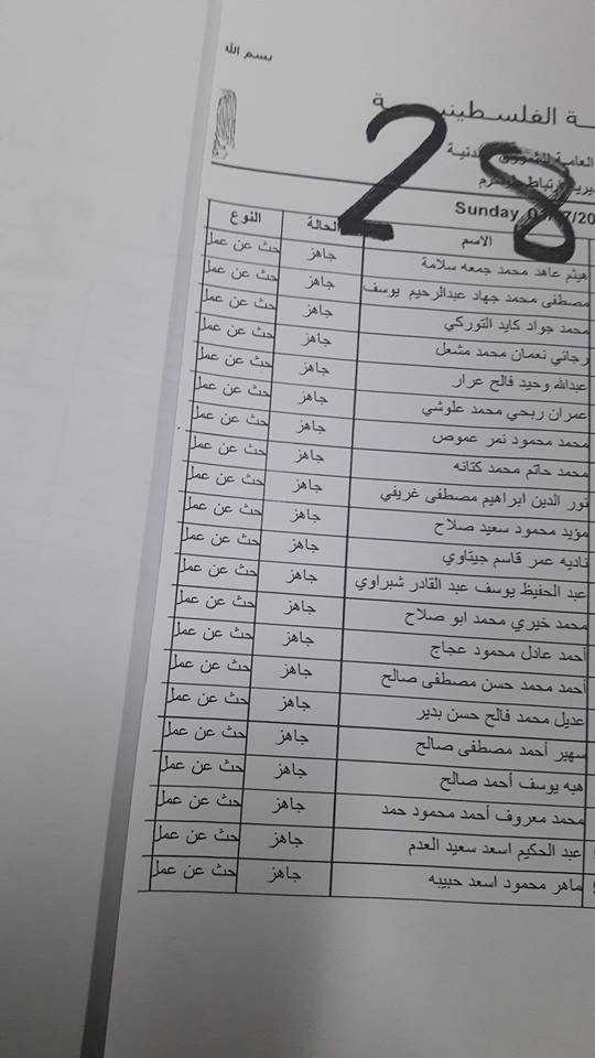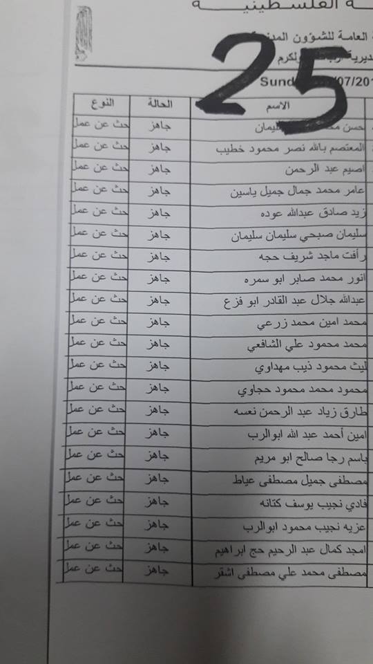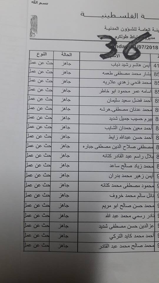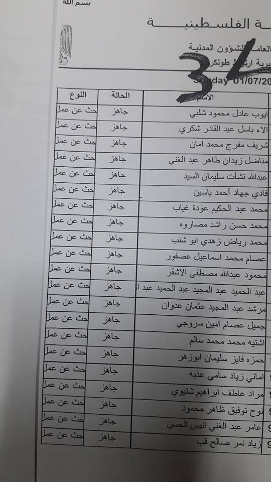الارتباط المدني الفلسطيني ينشر أسماء المقبولين لتصاريح البحث عن عمل والتي يسري مفعولها من تاريخ 22.07.2018 ولغاية 26.07.2018.