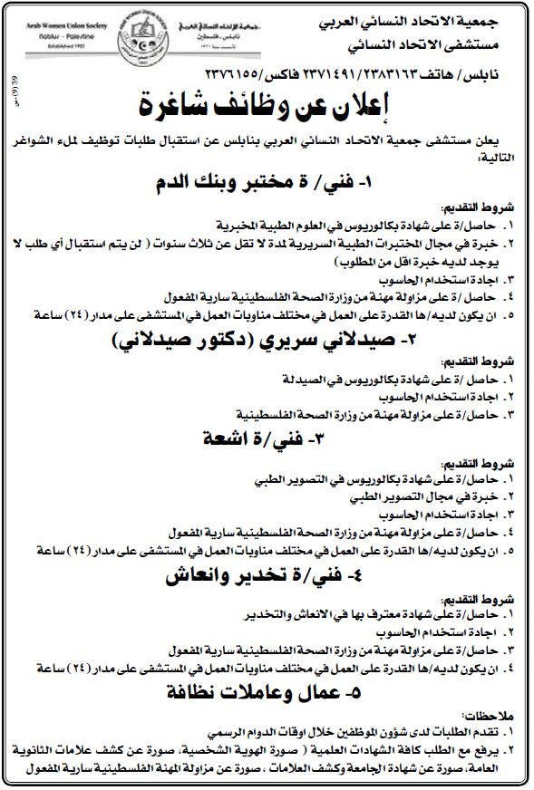 وظيفة شاغرة في مستشفى النجاح