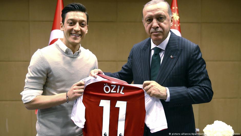 وكان أوزيل ومواطنه إلكاي غوندوغان، وكلاهما من أصل تركي، التقيا مع الرئيس التركي أردوغان في لندن في أيار/مايو الماضي والتقطا معه صورة وسلماه قميصين موقعين، كتب الأول على قميصه "إلى رئيسي"، وهو ما أثار موجه من الانتقادات للاعب الدولي. لكن بعد الخروج المبكر للمنتخب الألماني من مونديال روسيا زادت سهام الانتقادات التي وجهت لأوزيل. بالتعاون مع دويتشه فيله