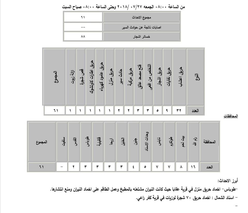 طواقم الدفاع المدني أخمدت 51 حريقاً وتعاملت مع 10 حوادث إنقاذ في 24 ساعة بمختلف محافظات الضفة الغربية.
