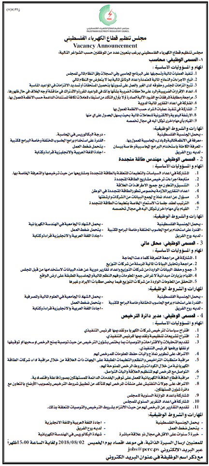 وظائف شاغرة لحملة الجنسية الفلسطينية