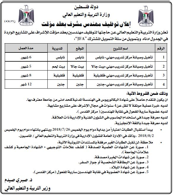وظائف شاغرة لحملة الجنسية الفلسطينية