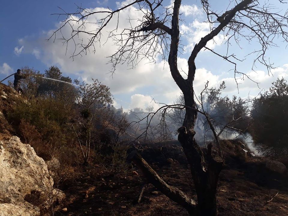اندلاع النيران بمئة شجرة زيتون في نابلس