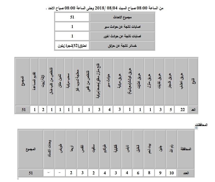 الدفاع المدني: 51 حادثاً في 24 ساعة