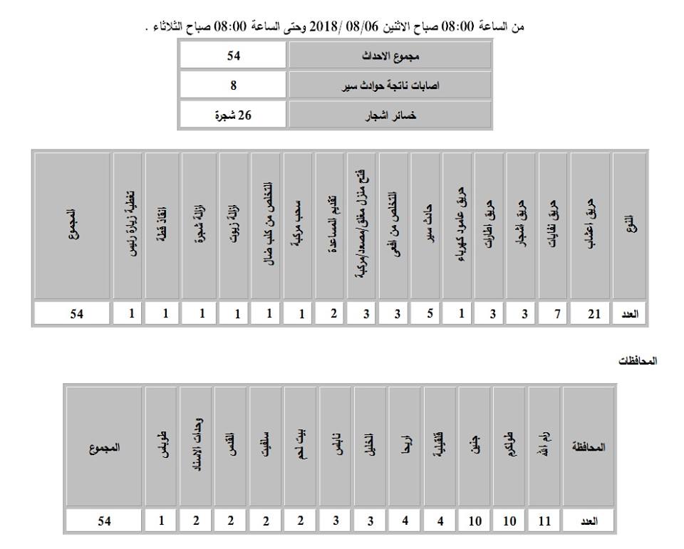 الدفاع المدني: 54 حادثاً في يوم
