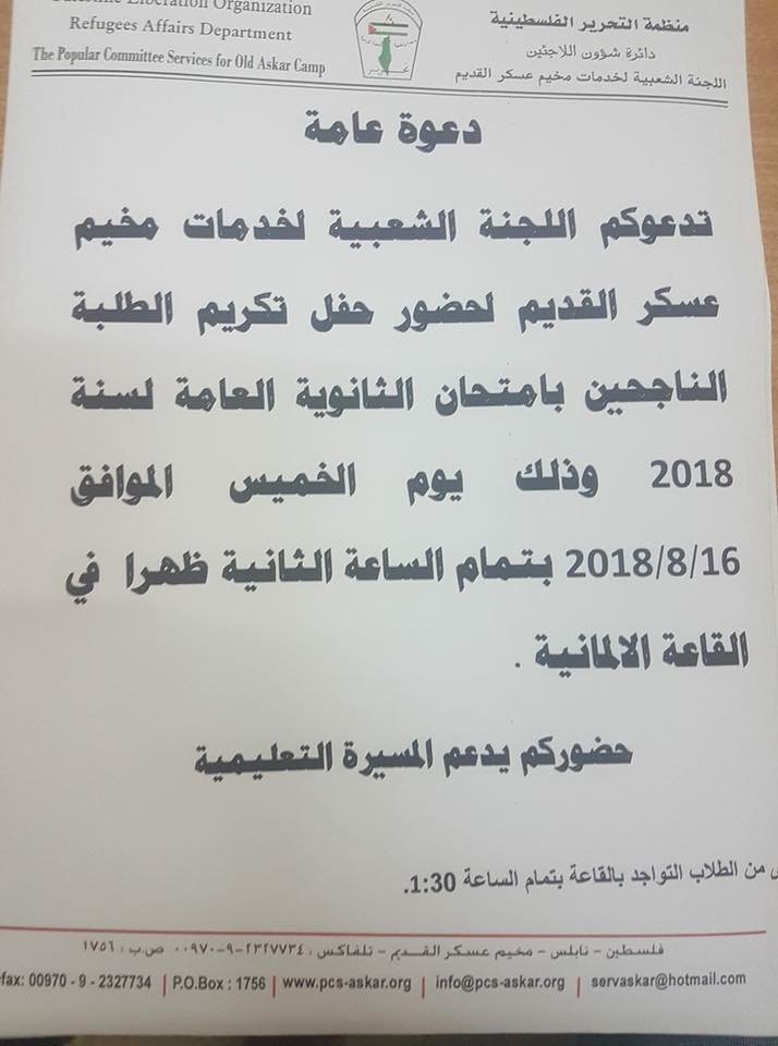 تكريم طلبة الثانوية العامة بمخيم عسكر