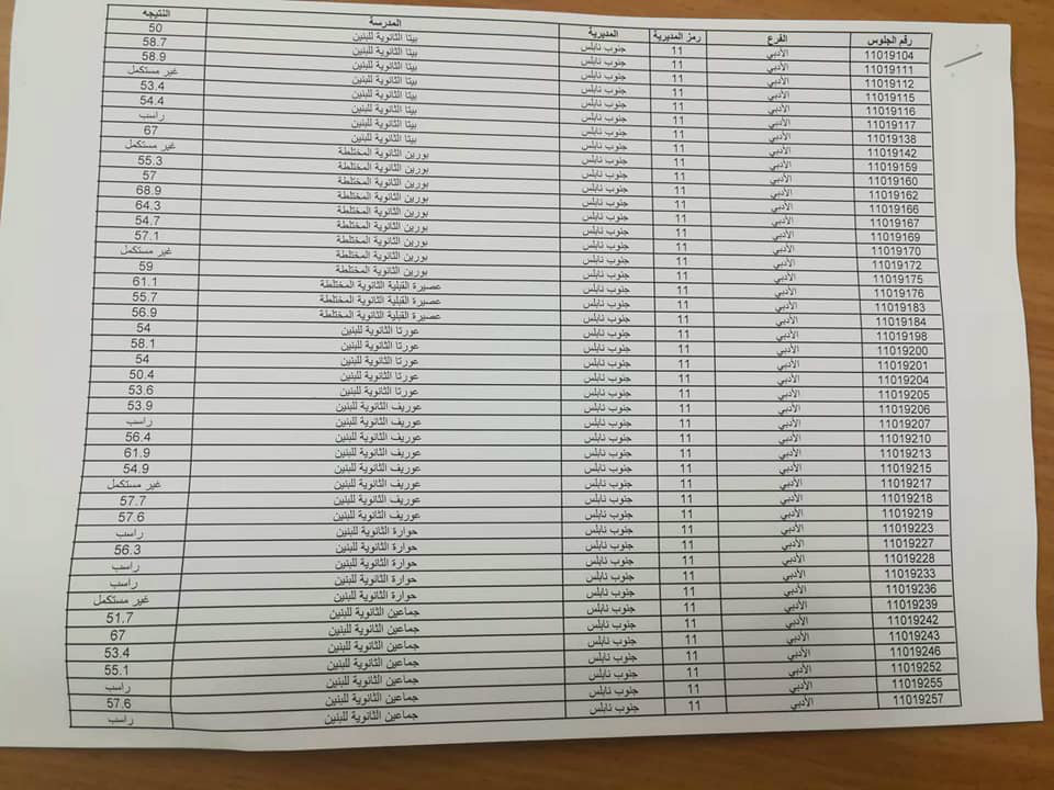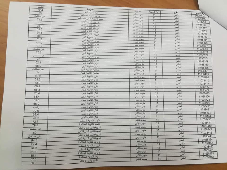 مديرية التربية والتعليم لجنوب نابلس تنشر قوائم نتائج امتحانات الدور الثاني لطلبة الثانوية العامة.