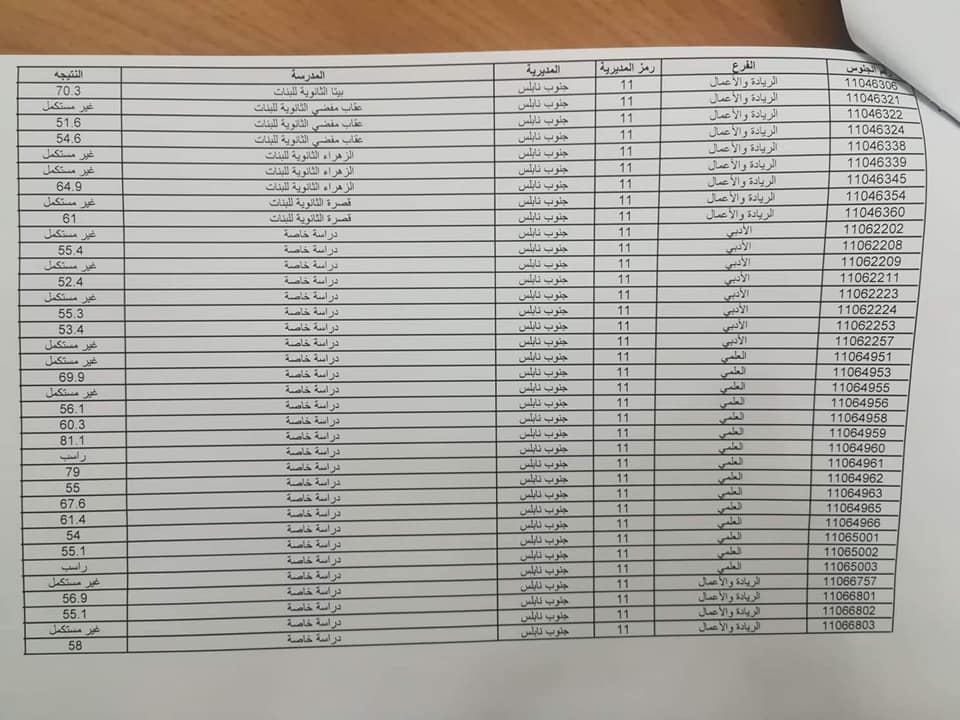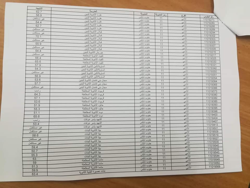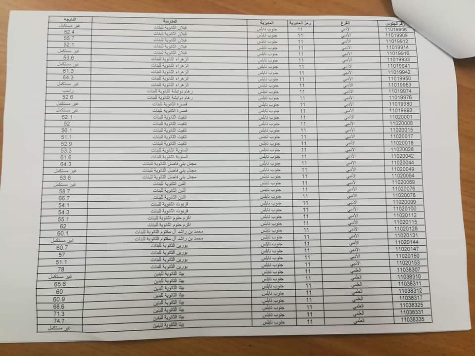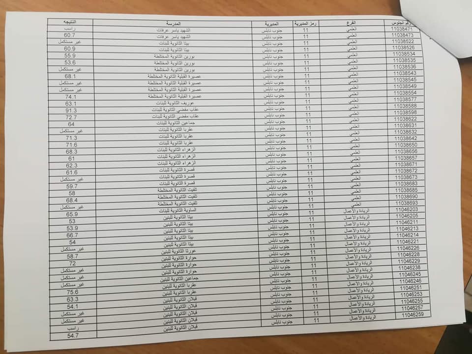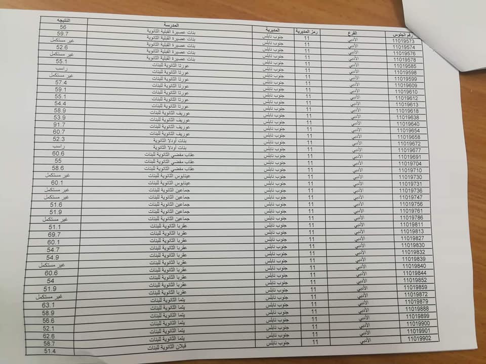 نتائج امتحان الإكمال لتربية جنوب نابلس