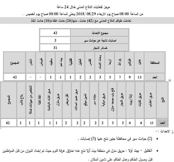 الدفاع المدني: 42 حادثاً في يوم