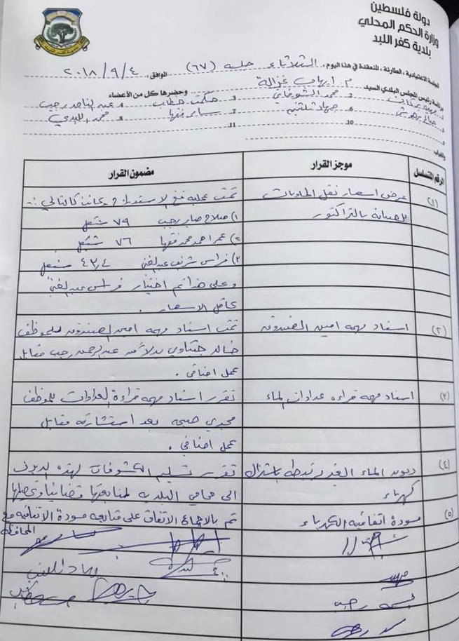 قرارات مجلس بلدي كفر اللبد - طولكرم